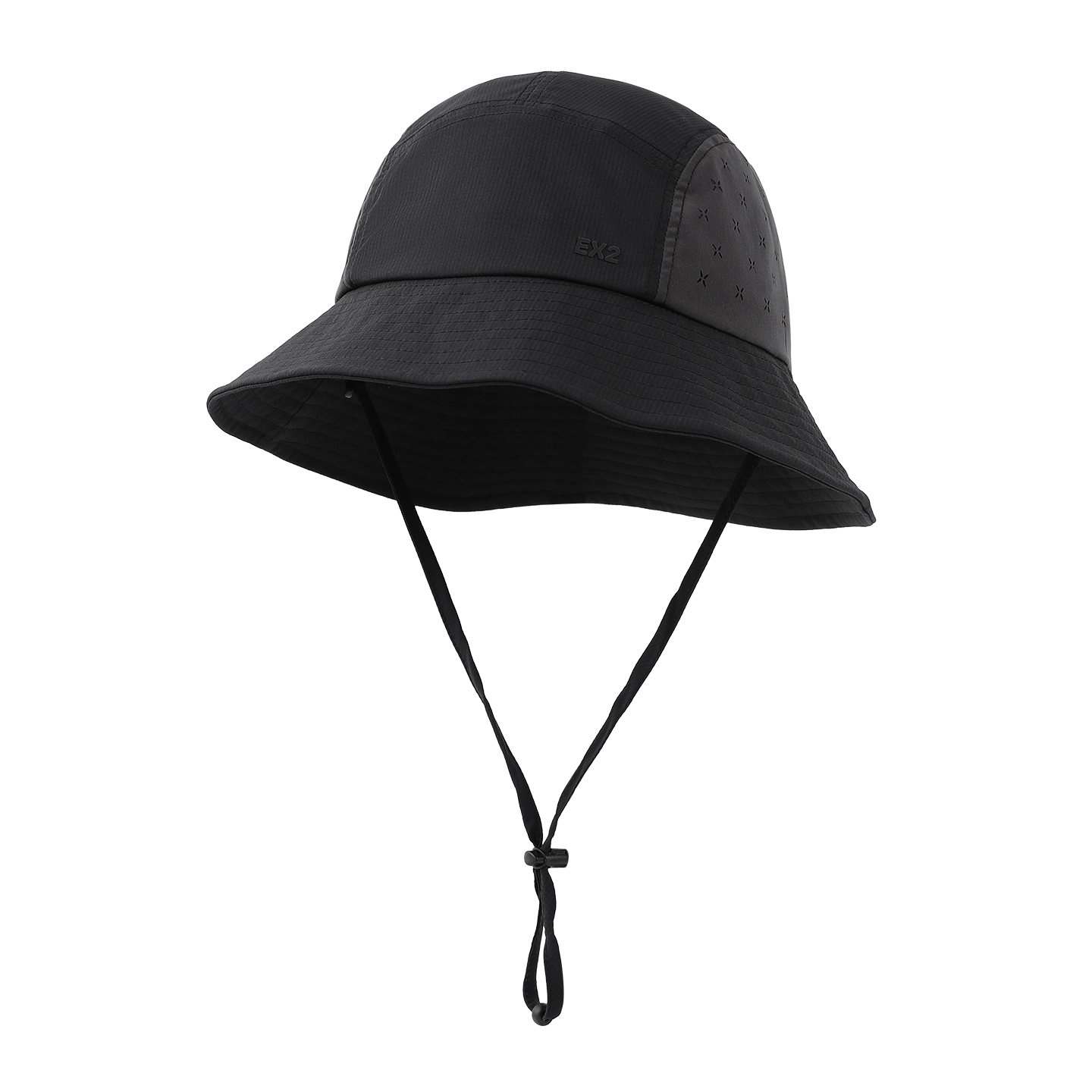 · A-line bucket hat with a 7cm brim and laser-cut perforations on both sides for enhanced ventilation.