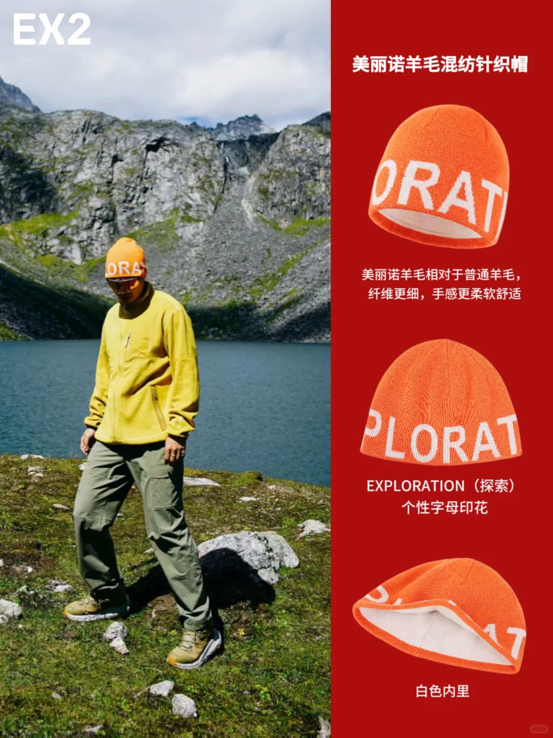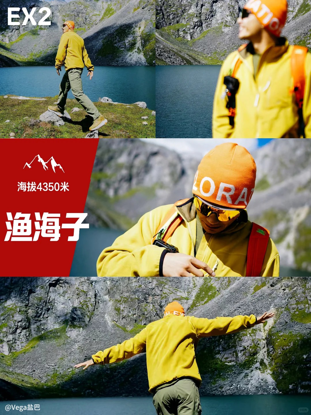 川西还是太权威了! 我宣布!!渔海子将成为下一个徒步爆火地 蹲到好天气记得来理县这个宝藏地 就在古尔沟附近,渔海子与后海子连在一起 渔海子是名符其实有鱼又可钓鱼的湖泊 无门票、人不多,还能露营 · 出行建议: 渔海子海拔4350米,出发前要做好防高反准备 提前3天看好天气,选晴天出发 量力而行“绝望坡”不是浪得虚名 · 穿着建议: 登山杖和雨衣是必备 川西现在已经入秋,建议看温度穿搭,冲锋衣、速干内搭、墨镜必不可少,还有防风保暖的针织帽。建议亮色配搭,比如戴上EX2新款美丽诺羊毛混纺橙色针织帽不仅保暖,跟海子和蓝天配搭,亮眼又出片